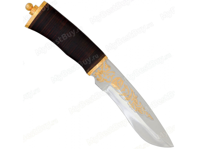 Нож Зубр. Рукоять кожа. Золочение Нож Зубр. Рукоять кожа. Золочение
